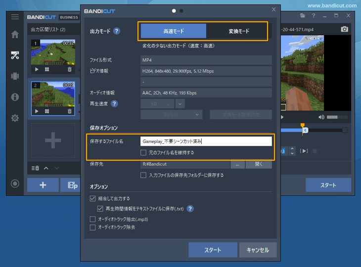 Bandicutを使ってTS、MOV、VRO、VOB、MKV、MP4、FLV、AVI、WMVなどの動画の複数の区間を結合したり、複数の動画ファイルを結合し、その動画をYouTubeにアップロードする際に、動画を複数の区間に分割しチャプターに分けておくと、YouTube上でチャプターごとにプレビューが表示されるようになります。チャプターがあると視聴者が再生したい部分を簡単に見つけることができ、ピンポイントで再生できます。Bandicutの[再生時間情報をテキストファイルに保存(.txt)]オプションを使って、動画の複数の区間を結合したり、複数の動画を結合する債に、結合部分の時間情報を簡単にYouTubeの動画チャプター情報に反映できます。